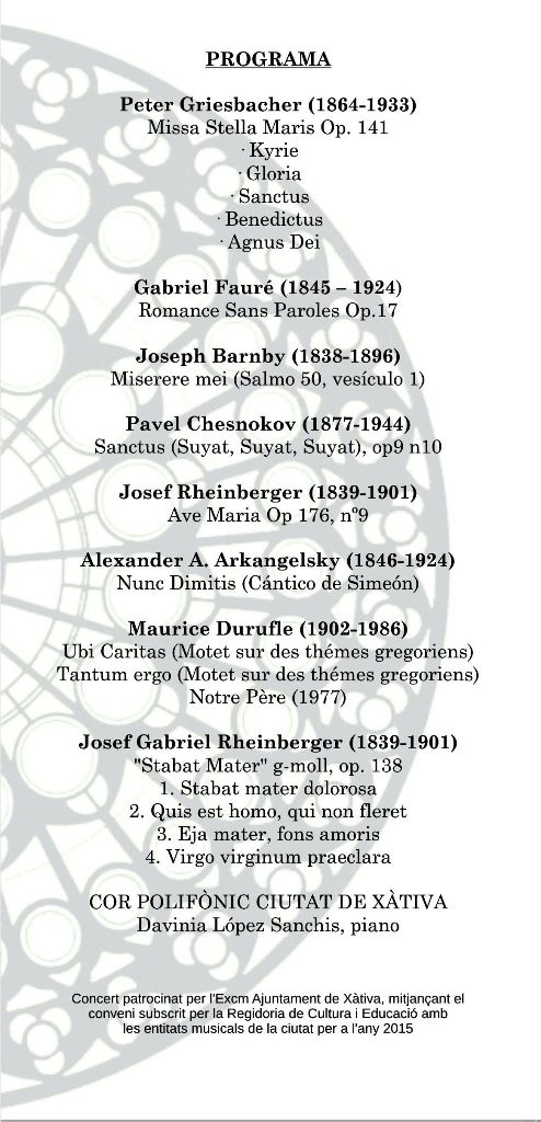prog. concert sacre2 – copia Programa per corciutatdexativa06/03/2015 Comments 0 0 comments on “prog. concert sacre2 – copia” Deixa un comentari Cancel·la la resposta Δ Navegació d'entrades Entrada prèvia