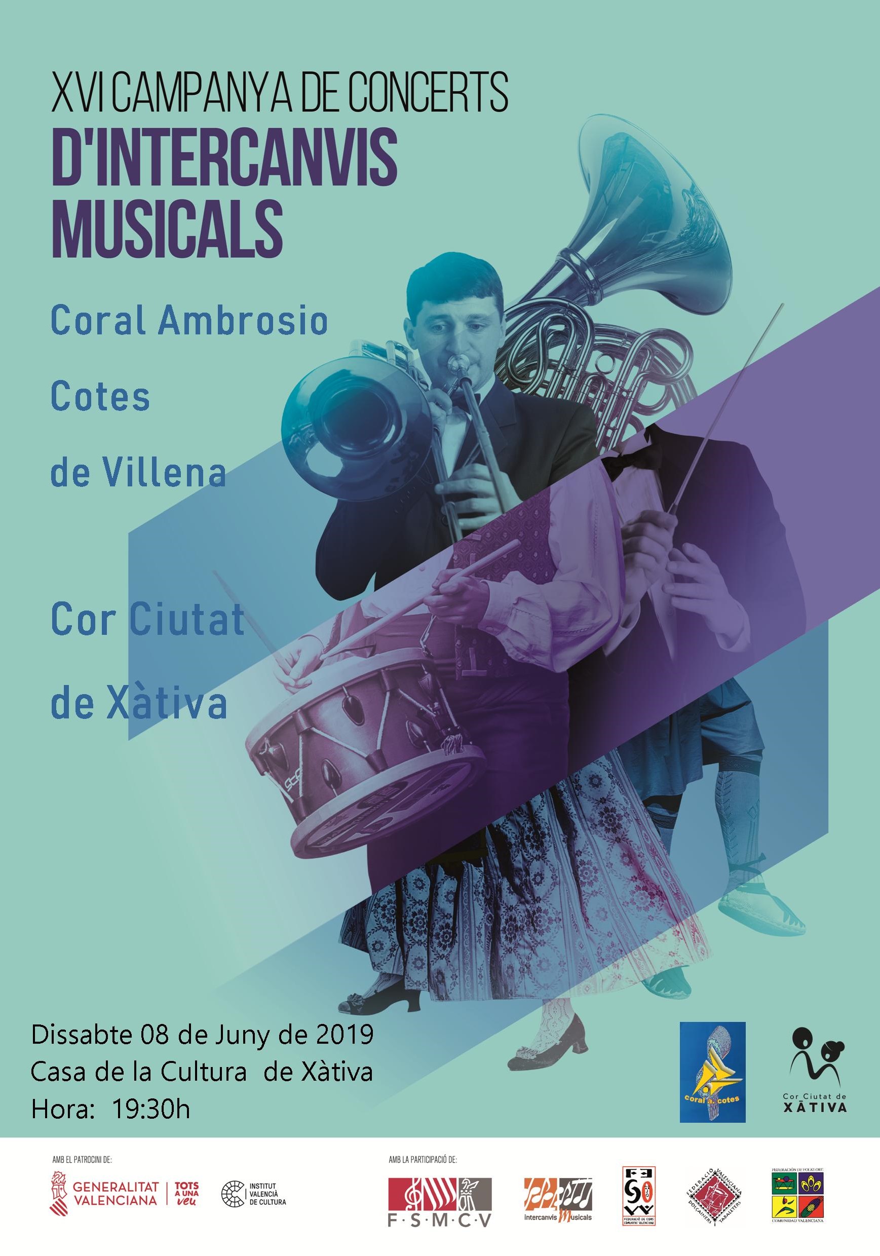 El proper 8 de juny de 2019 a la Casa de la Cultura de Xàtiva tindrà lloc el primer dels dos concerts d’intercanvis musicals’19.