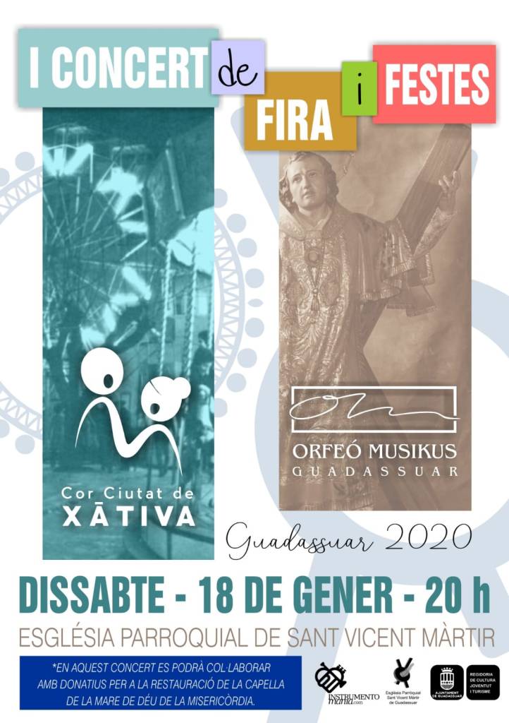 El Cor Ciutat de Xàtiva ha estat convidat per l’Orfeó Musikus ha participar en el I Concert de Fira i Festes a Guadassuar que tindrà lloc el dissabte 18 de gener de 2020 a les 20:00, a l’Església Parroquial de Sant Vicent Màrtir.