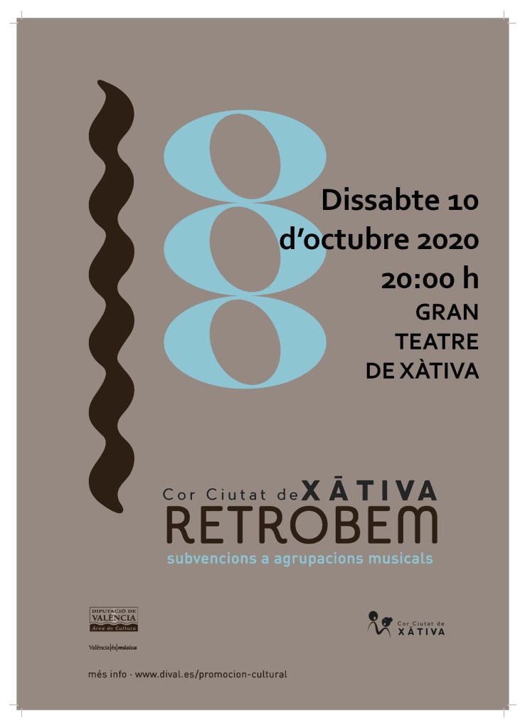 El Cor Ciutat de Xàtiva participa en la Campanya de Concerts patrocinada per la Diputació de València “Retrobem la Nostra Música”, amb un concert que tindrà lloc el proper dissabte 10 d’octubre a les 20:00 h al Gran Teatre de Xàtiva.