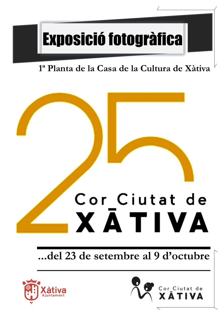 Exposició fotogràfica “El Cor Ciutat de Xàtiva compleix 25 anys” del 23 de setembre al 9 d’octubre a la 1ª planta de la Casa de la Cultura de Xàtiva.