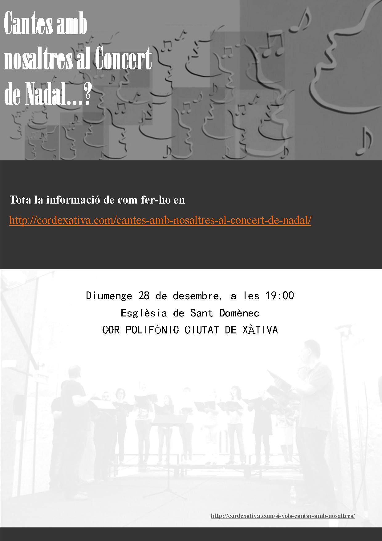 Si vens a escoltar-nos al concert el proper 28 de desembre, a les 19:00 a Sant Domènec i vols participar en ell com a cantant en dos de les peces que interpretarem… està fet!!!.
