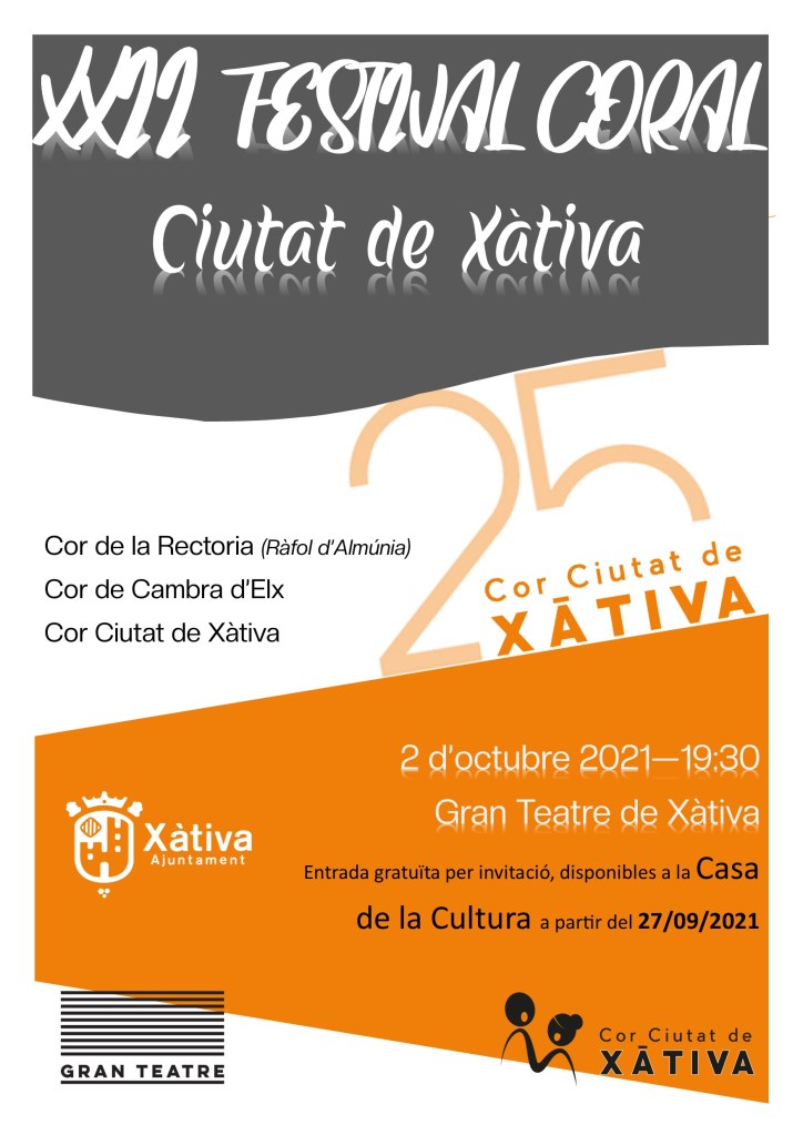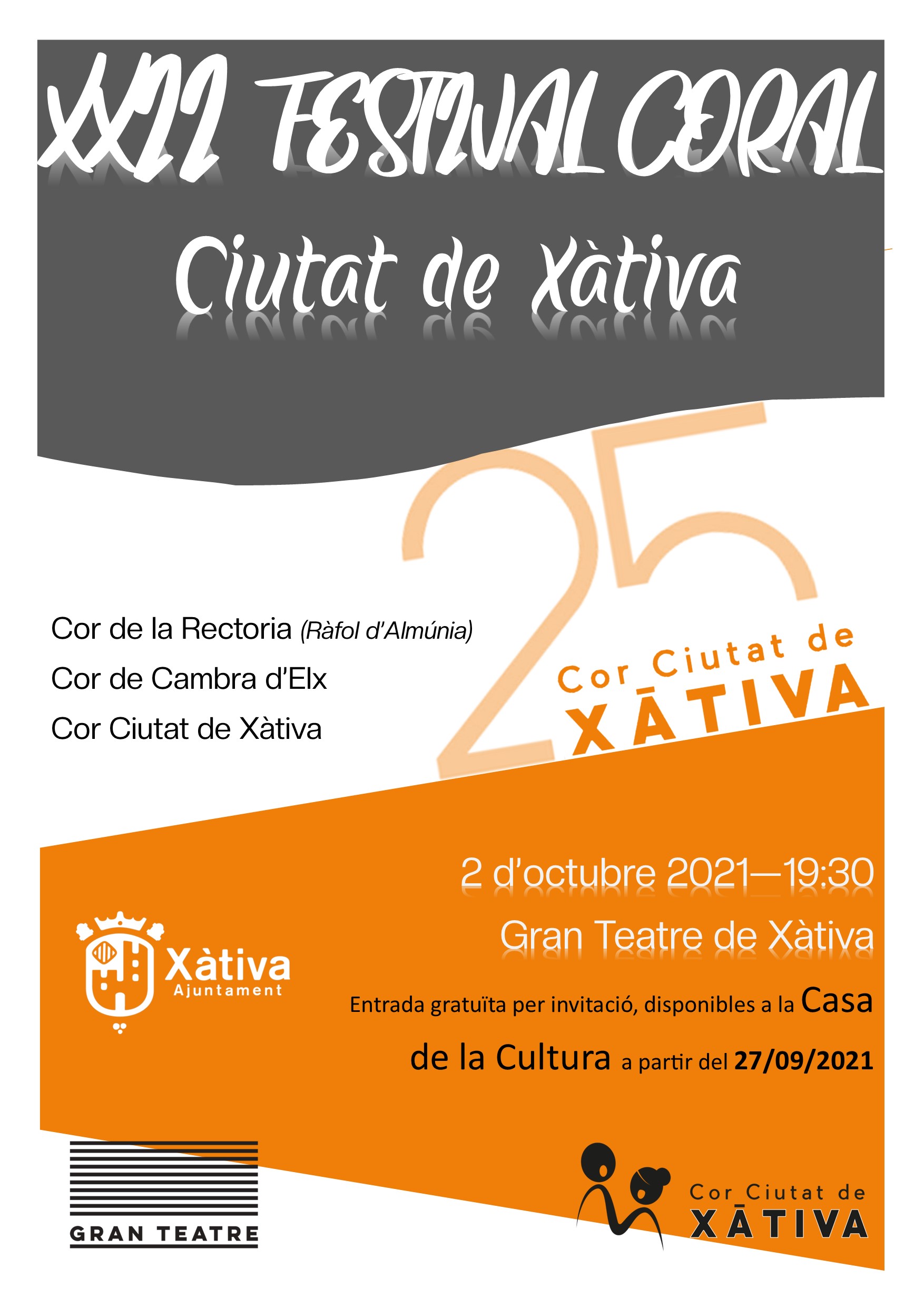 Cartell XXII Festival Coral Ciutat de Xàtiva DESCARREGA EL CARTELL: Cartell XXII Festival Coral – 2Baixa Cartell en jpg